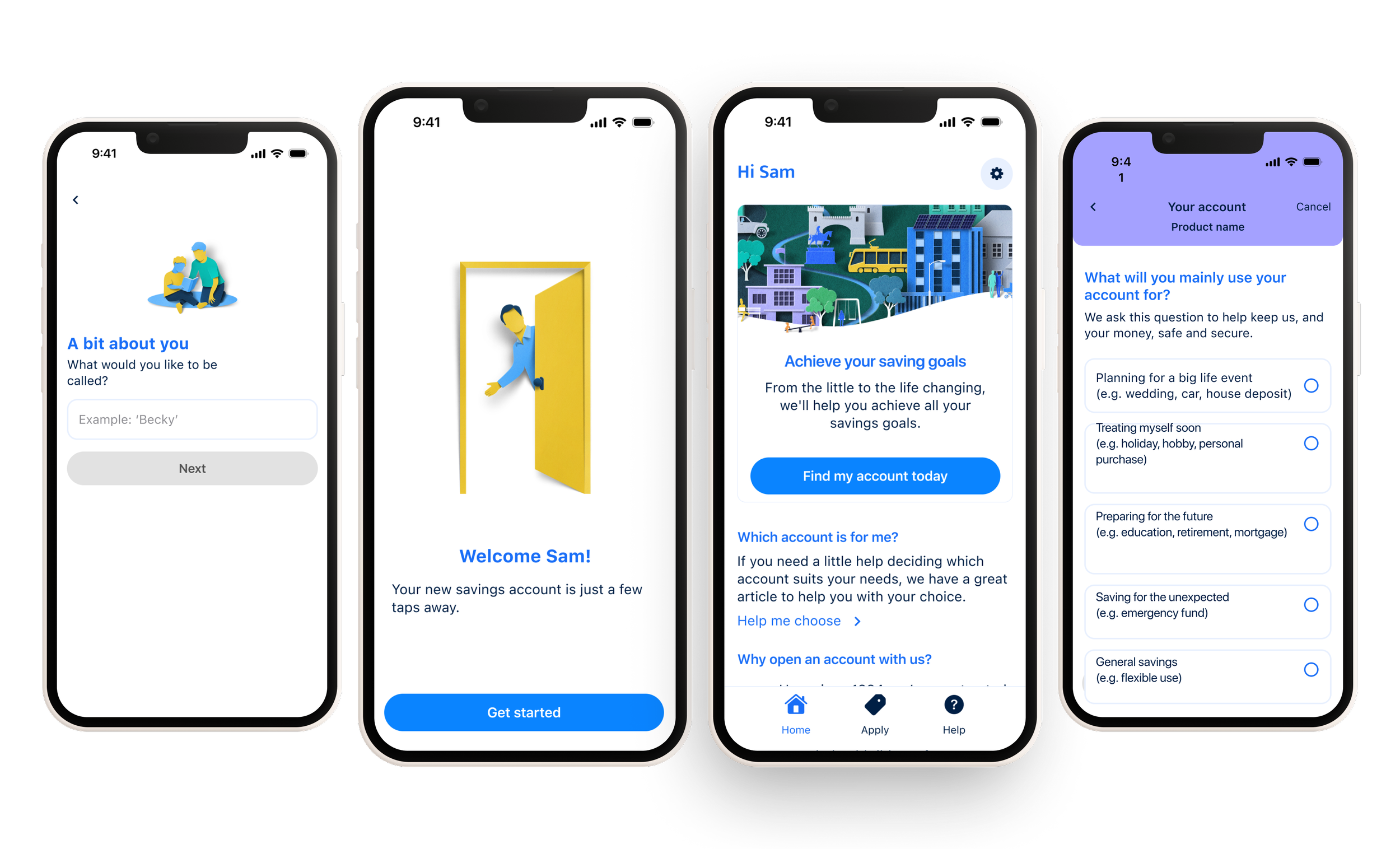 Instead of asking business-like questions such as “What will you use the account for?” I reframed them around life events, making them more relatable.