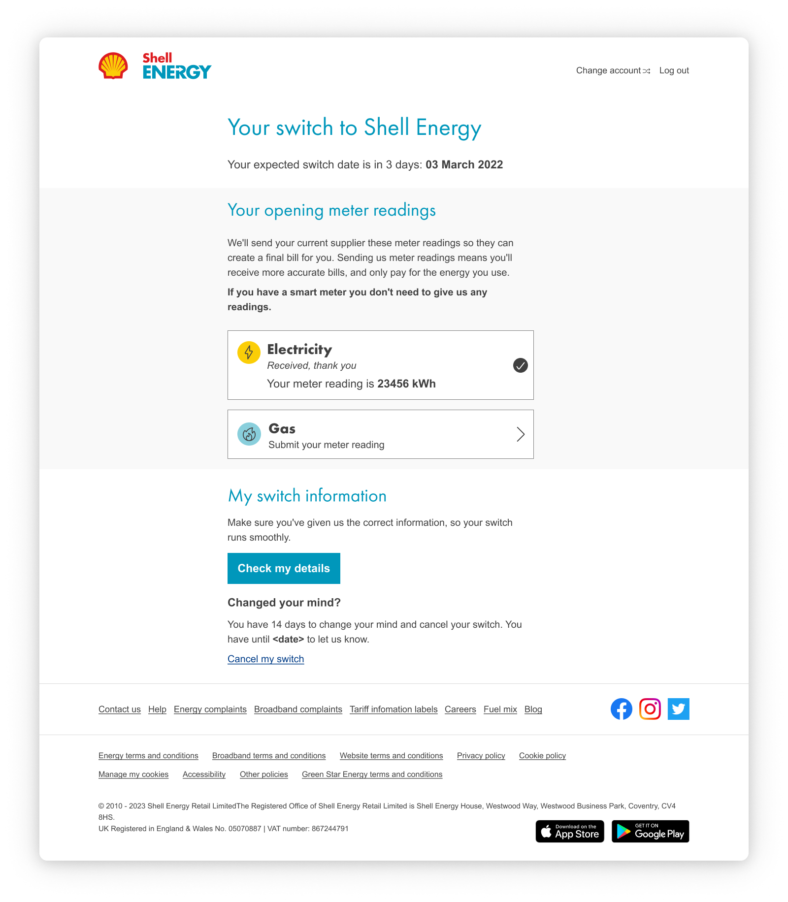 Provided a real-time countdown of the customer switch date, to provide a more personalised experience